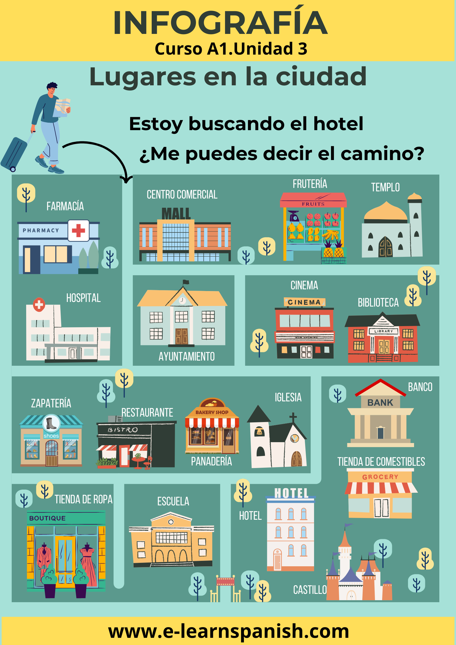 Infografía Lugares en la ciudad en español
